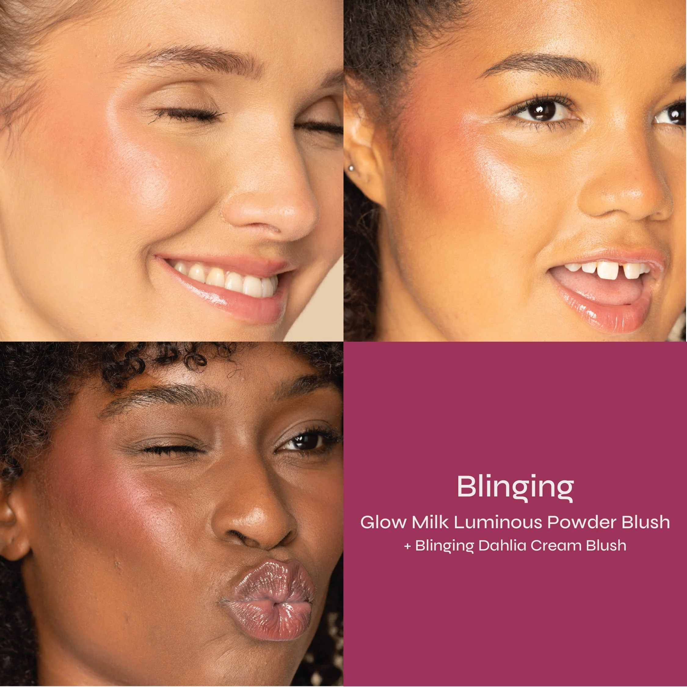 Get your glow on with our Glow Milk Luminous Powder Blush - Set of 5.The internet can’t get enough of our luminous powder blushes - and once you try them, you’ll totally understand why. With a silky-soft satin finish and serious pigment payoff, these glow-getting essentials blend like a dream and melt seamlessly into your skin for a radiant, lit-from-within pop of colour.Whether you’re after an everyday flush or building up for a bolder glow, this versatile set features soft pinks, vibrant corals, rich berry tones and a shimmering champagne highlight.Popping Peony (Warm Light Pink), Glistening (Peach Pink), Blinging (Warm Berry), Lavish (Vibrant Cool Pink) or Glimmer (Champagne) - which will become your perfect blush moment?