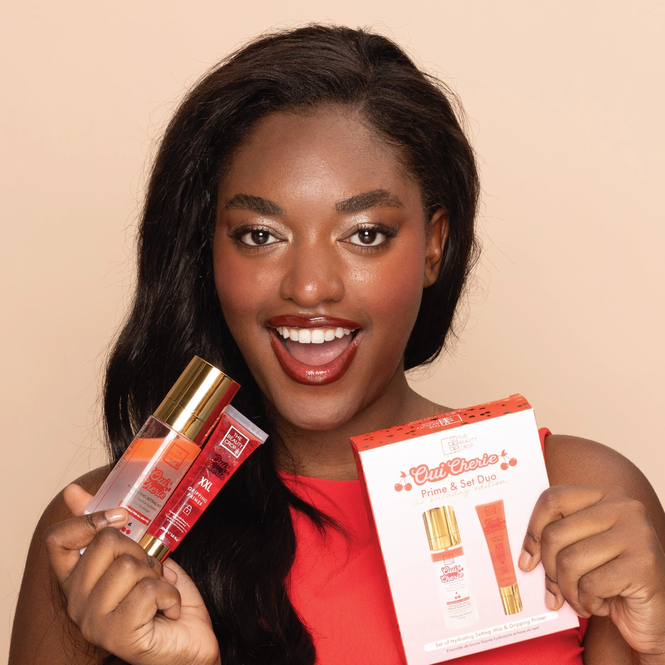 Our Oui Cherie Prime & Set Duo is the ultimate dream team, combining our viral gripping primer and setting mist for makeup that looks flawless from start to finish. Packed with antioxidant-rich Cherry Extract and skin-quenching Hyaluronic Acid, these two are here to keep your skin perfectly prepped, hydrated and glowing.