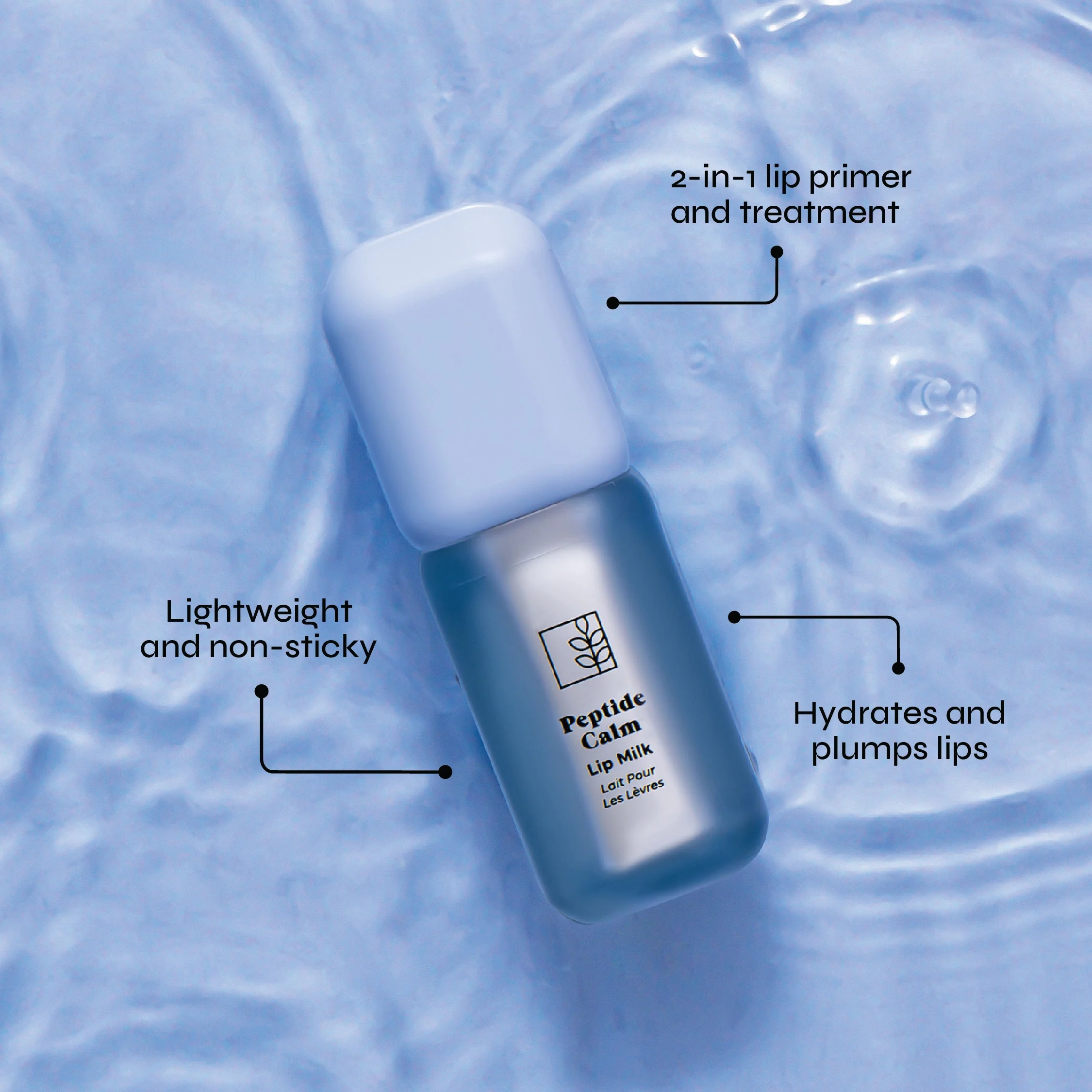 Pucker up and pamper your lips with our Peptide Calm Lip Milk Hydrating Treatment. This 2-in-1 lip primer and treatment is packed with Peptides, Vitamin E and Glycerin to deliver rich moisture while helping to plump and soften for irresistibly kissable lips. It glides on like a dream, absorbs quickly and leaves no sticky residue behind.Use it alone overnight for nourishing care while you sleep, or as the perfect base under your favourite lipstick to keep lips smooth and supple.Say goodbye to dry, flaky lips and hello to a comfortably hydrated, plump pout that lasts all day.