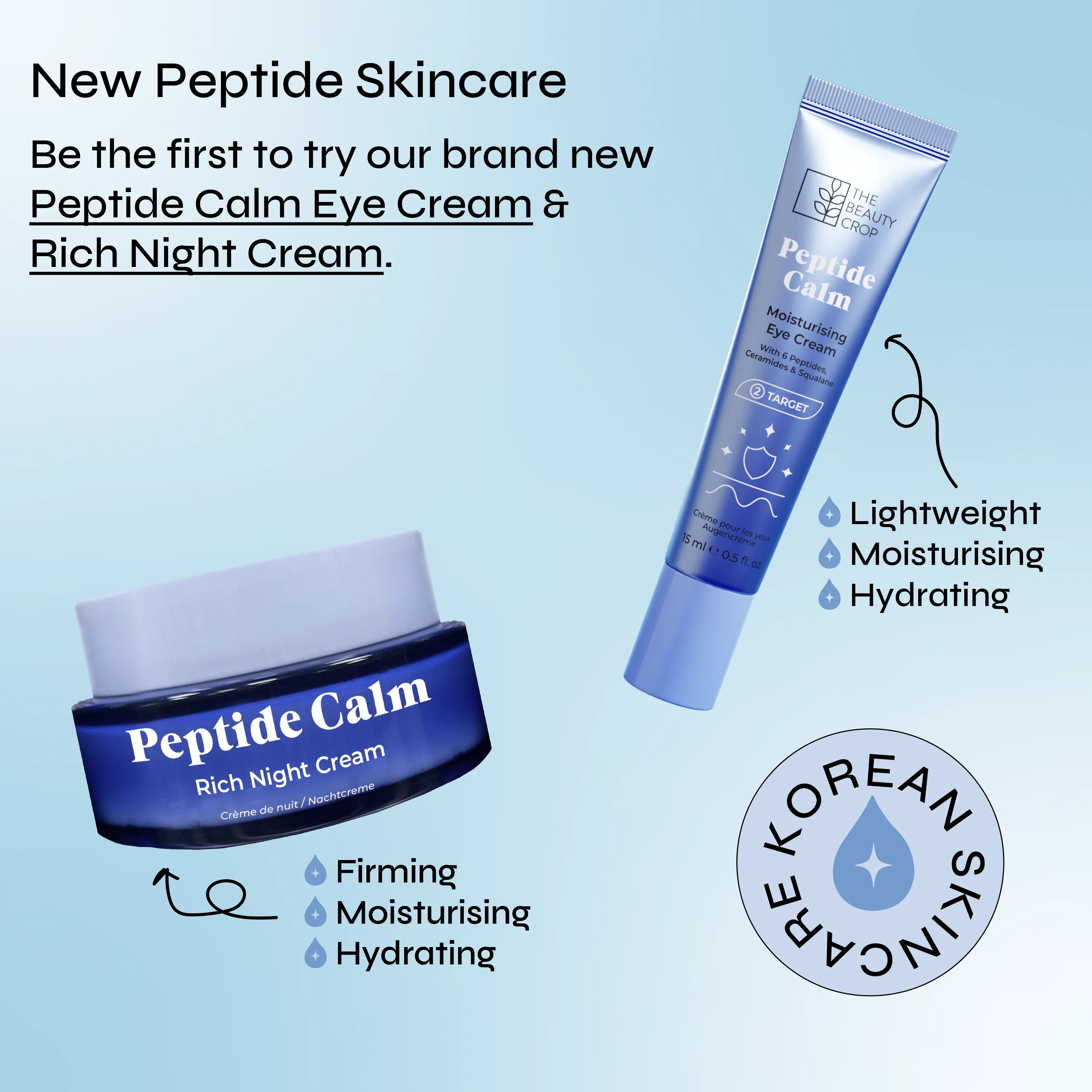 Give your under-eyes the care they deserve with our Peptide Calm Moisturising Eye Cream.